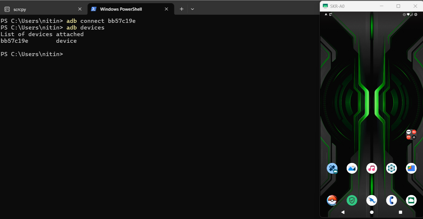 To perform instructions on our device, we must connect it to adb. To do this, go to Settings >> Developer options and enable debugging on the device so that adb can communicate with it. Enter the following command to check if the device is connected: