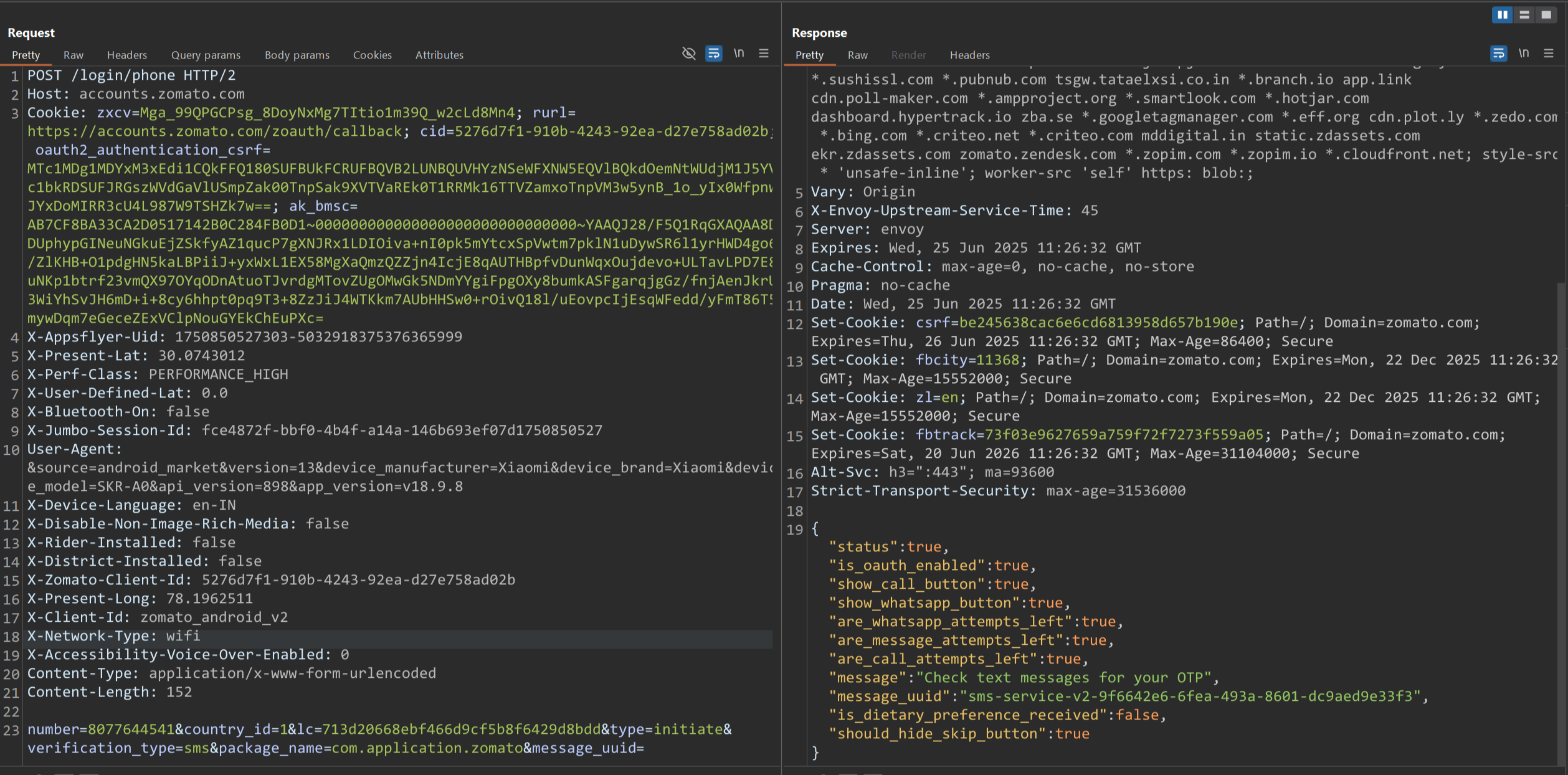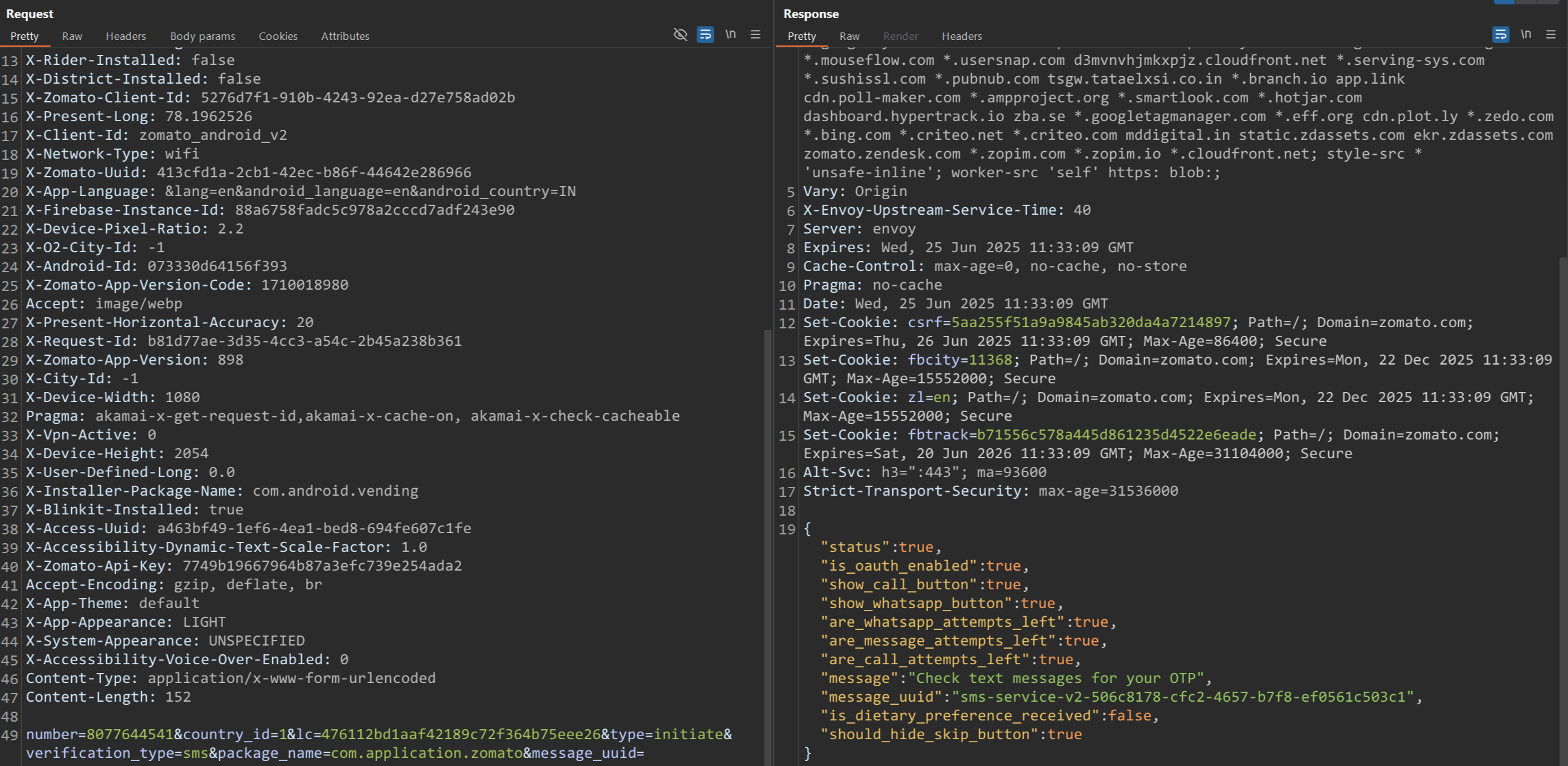 SSL pinning has now been successfully bypassed using both methods. The Zomato app accepts our Man-in-the-Middle (MitM) HTTPS proxy, enabling us to intercept and inspect its network communication.