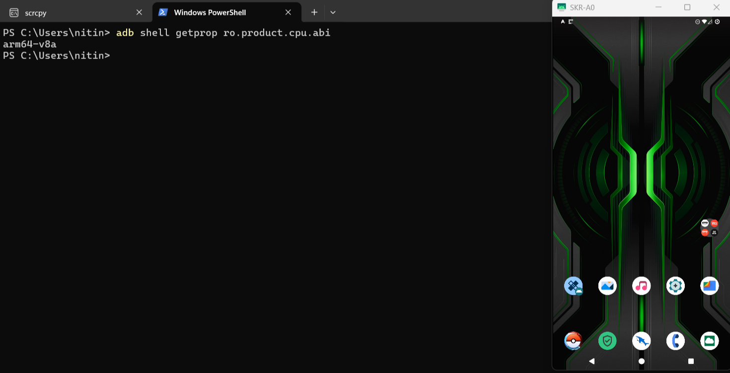 In our case, the device architecture is arm64-v8a.